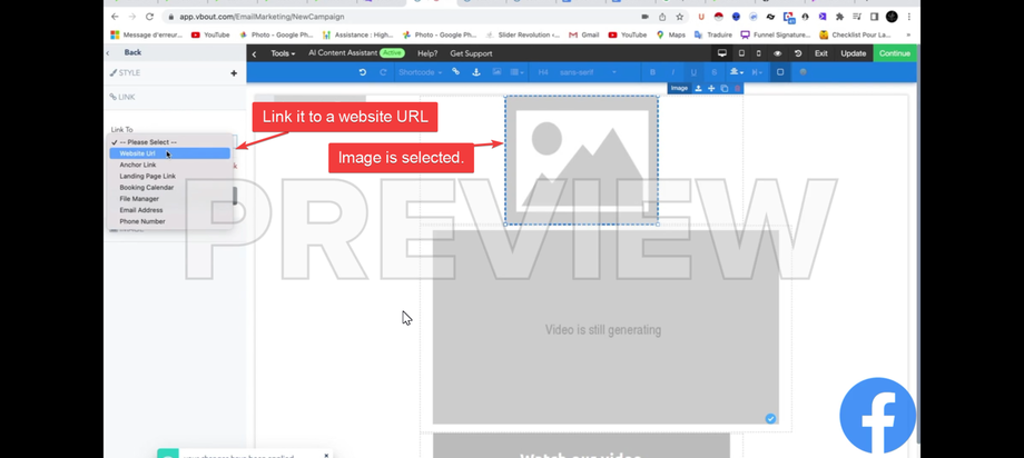 - In your autoresponder, choose to build the layout of your email yourself and then you can use an image, HTML (paragraph) or a video element to link back to your platform's landing page.